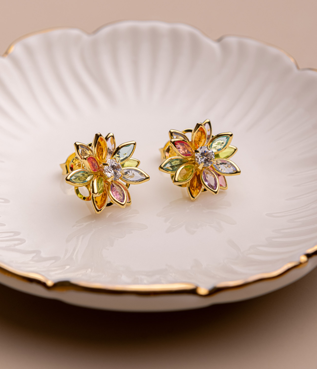 Brinco flor banhado a ouro 18k, hipoalergênico, com resinas coloridas, 1 ano de garantia. Delicado e sofisticado. Com design inspirado na natureza, apresenta pétalas detalhadas que trazem um toque romântico e elegante ao acessório. Leve e confortável, é ideal para diversas ocasiões, desde o dia a dia até eventos especiais. Perfeito para quem busca um brilho sutil e atemporal.