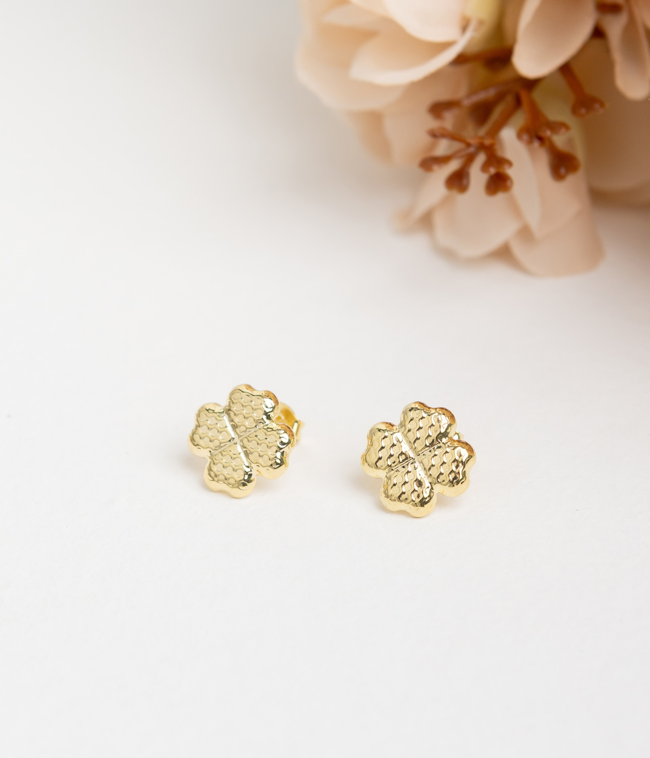 Brinco elegante e sofisticado, modelo trevo, banhado a ouro 18K, antialérgico e 1 ano de garantia. Ideal para quem busca um acessório clássico e refinado, perfeito para complementar looks casuais ou formais com um brilho sutil e sofisticado.
